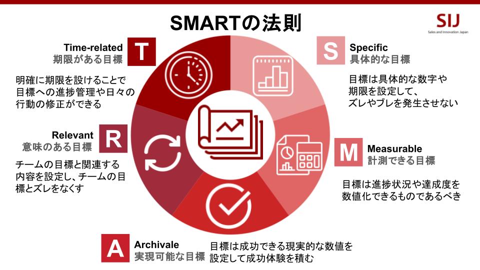 このように設定することで、「何を学ぶべきか(クロージング技術、SPIN話法)」「何を実践すべきか(テストクロージング、状況質問)」「何をもって成功とするか(受注率25%、商談化率15%)」が明確になります。