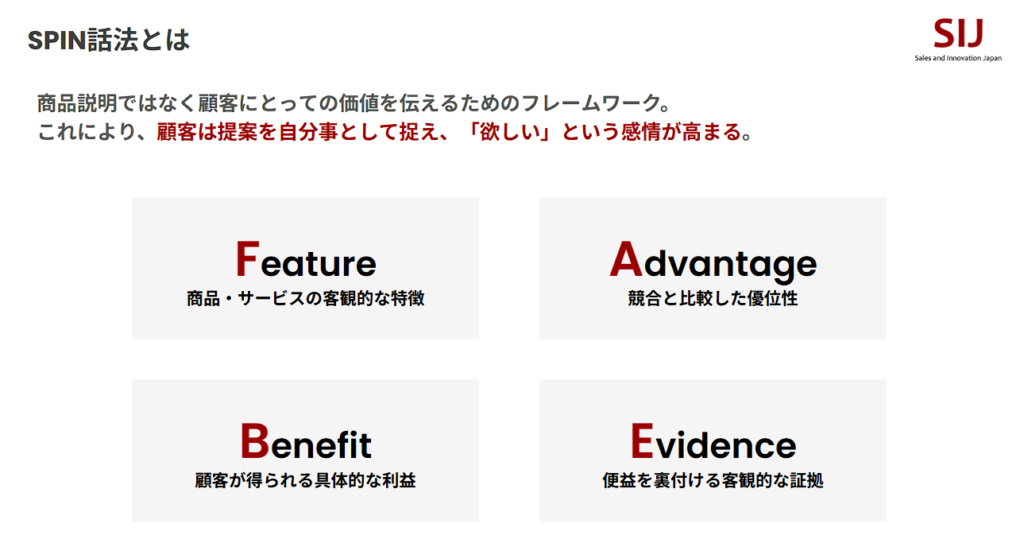 | Try (次に挑戦すること) | この反省を踏まえ、次の商談で具体的に何を試すか?(例:価格提示の前にFABEを徹底する) |