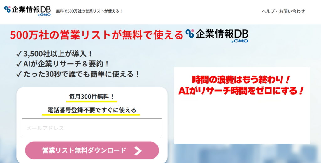 | サービス名 | 企業情報DB by GMO(List.corporatedb.jp) — 営業リスト作成ツール |