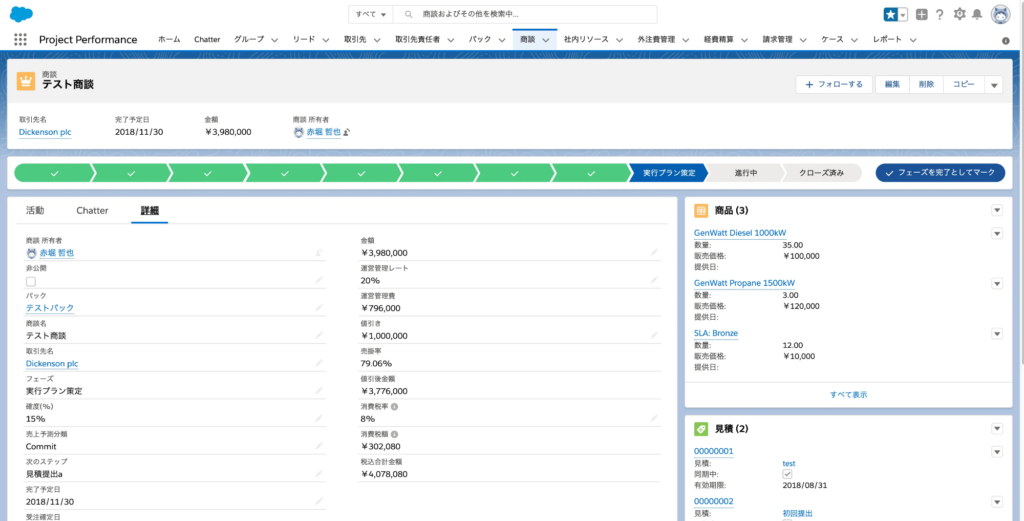上記は商談フェーズをSalesForceで確認している様子です。これにより、営業活動の進捗を商談ステージ別に可視化することが出来ます。